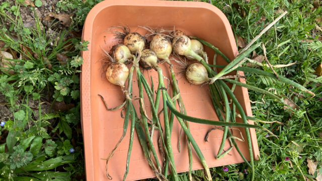 たまねぎを収穫
