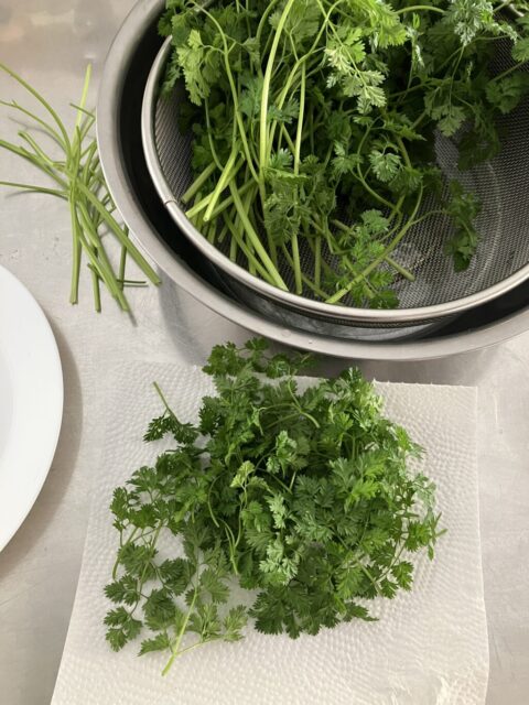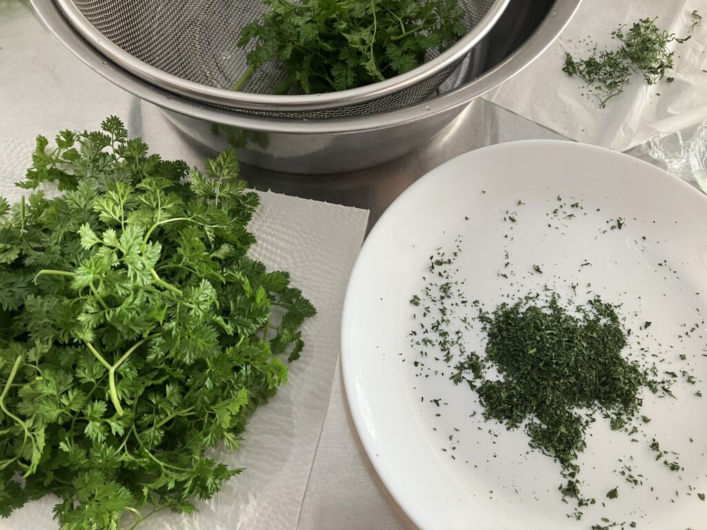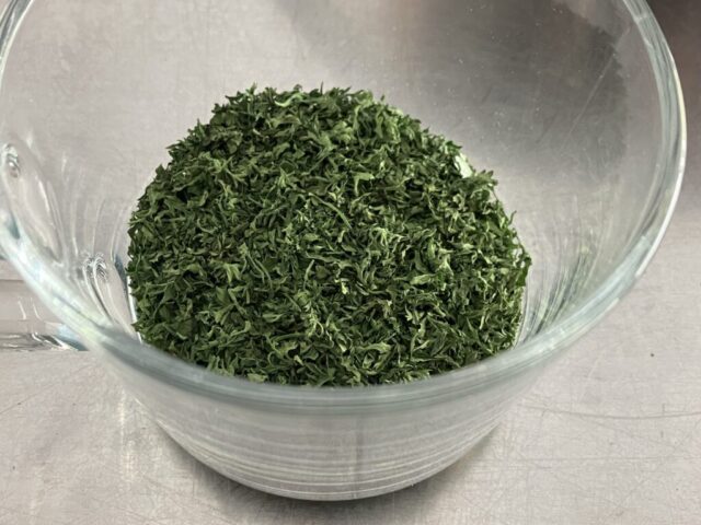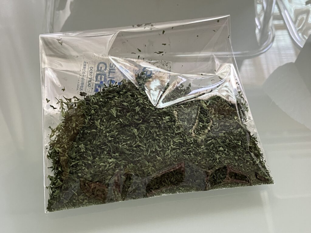 7.乾燥した葉を手で細かくバラバラにする。細い茎は取り除いて完成。
