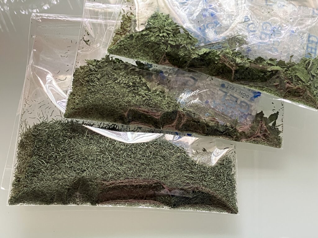 花を咲かせる前に、ハーブを収穫して、レンチンでドライハーブ。